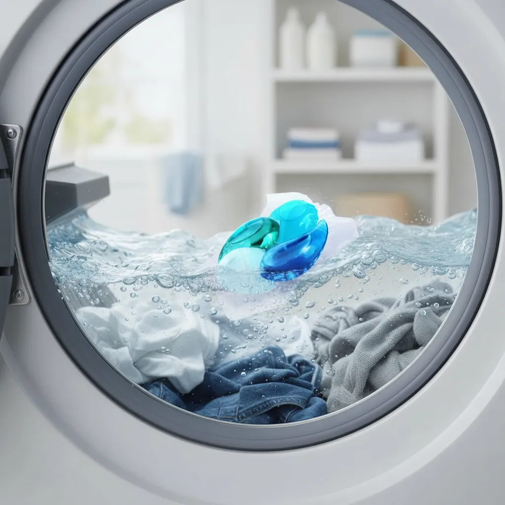 Coloca la cápsula, carga la ropa e inicia el lavado